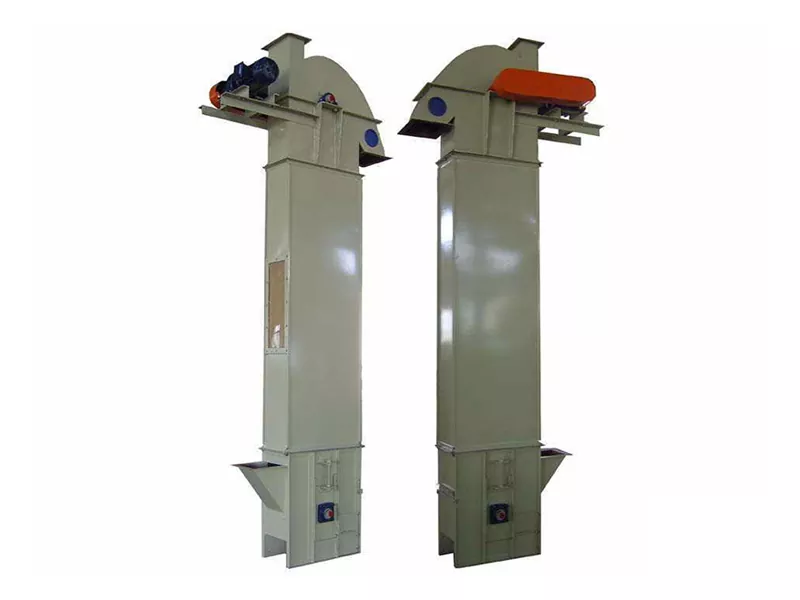 Hopparen skopar materialet från förvaringen nedan, och när transportbandet eller kedjan lyfts till toppen, svänger det nedåt efter att ha gått bort i jackhjulet, och hinklippet tuttar materialet i den mottagande slot. Drive Sprocket, under eller högre är ett par förändringsuttag, hiss hiss är utrustad med hus för att förhindra dammet i hissen.